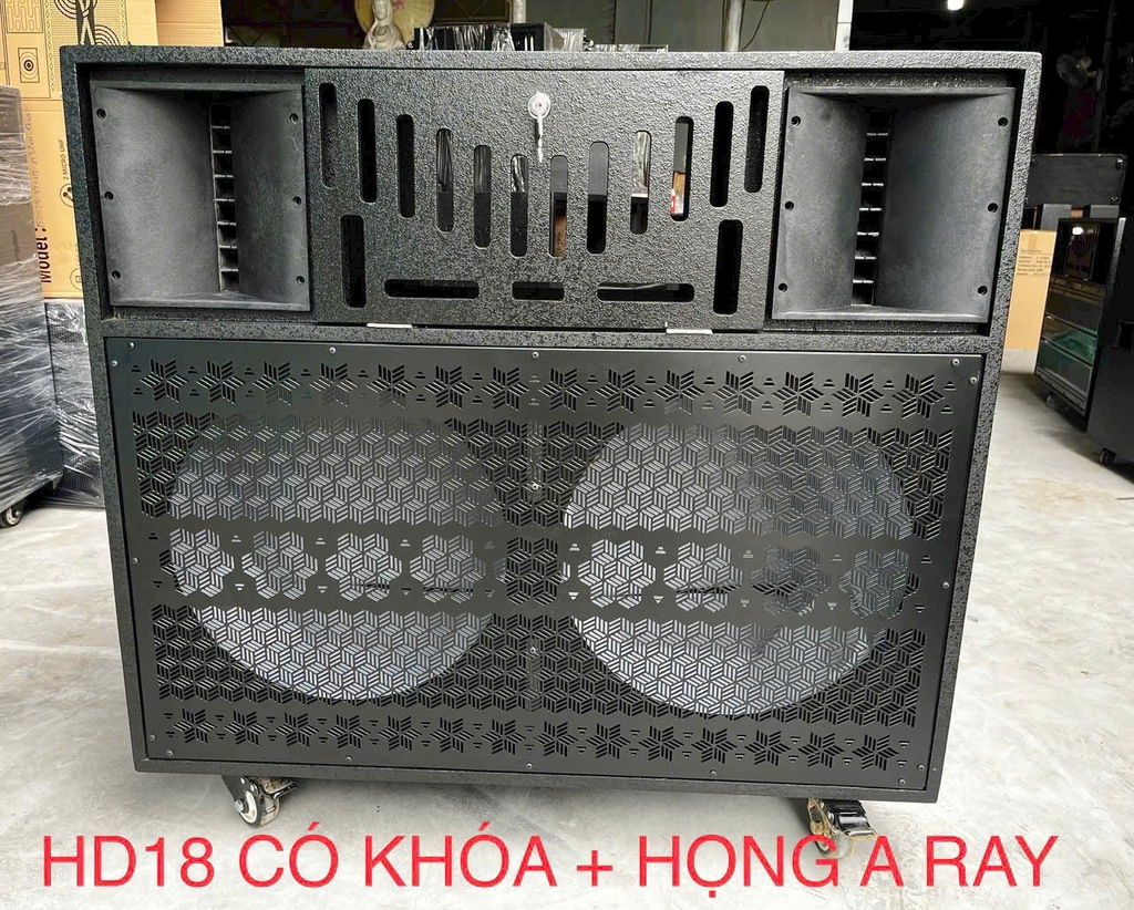 Đặc điểm nổi bật của vỏ thùng loa kéo điện 50 đôi là sự thiết kế đầy đủ phụ kiện. Họng kèn tích hợp giúp tăng cường hiệu quả âm thanh và độ phủ rộng hơn, đảm bảo rằng âm thanh được truyền tải một cách mạnh mẽ và rõ ràng. Bánh xe được gắn kết chắc chắn, giúp dễ dàng di chuyển vỏ thùng loa điện trong các sự kiện, buổi biểu diễn hoặc quán bar.