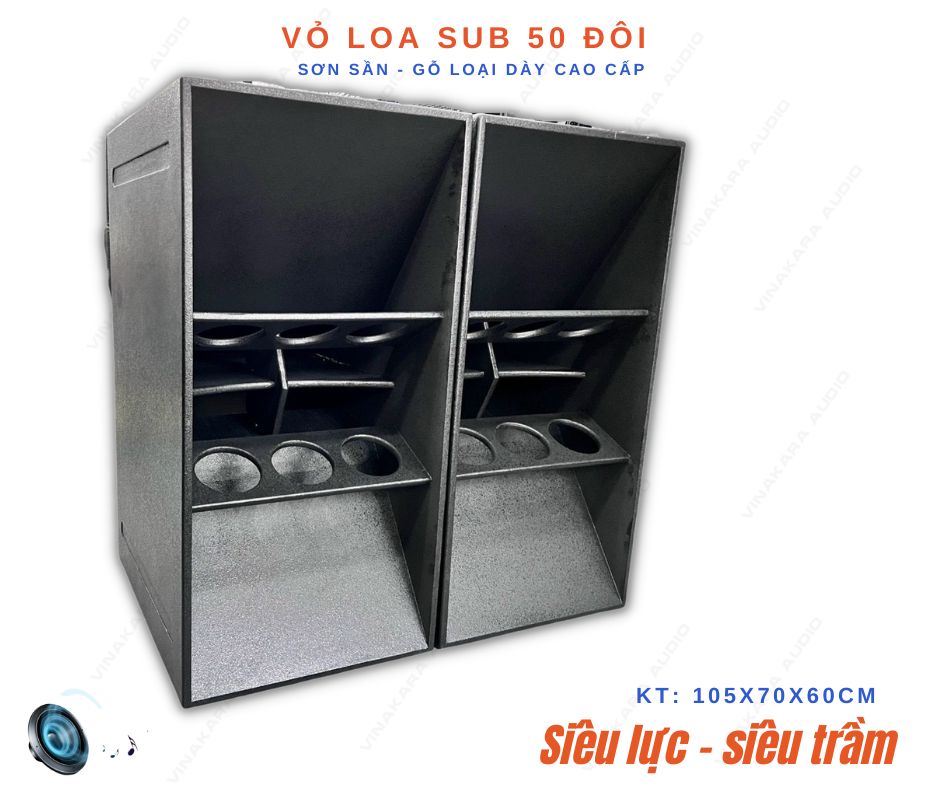 Vỏ thùng Sub đôi 2 Bass 50cm (5 Tấc Đôi) được sản xuất từ ván ép chất lượng, độ dày 2 phân, đánh lực cho anh e lắp ráp loa.
