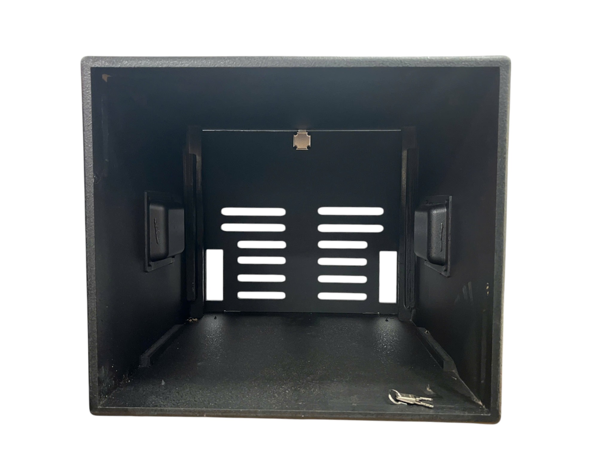 Phía sau tủ có khe thoáng khí và lỗ thoát nhiệt, đảm bảo cho thiết bị hoạt động ổn định, không bị nóng khi dùng lâu dài. Cửa tủ có khóa an toàn, giúp bảo vệ thiết bị trong quá trình vận chuyển hoặc khi lắp đặt ở nơi công cộng.