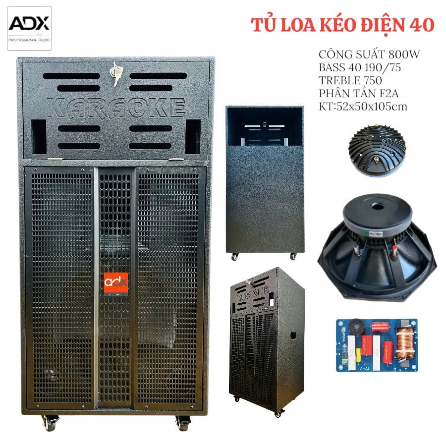 Tủ loa kéo điện 40 được thiết kế với bass 40cm từ 190 coil 75, kết hợp treble 750 cùng phân tần F2A cao cấp, mang đến chất âm uy lực, trầm sâu, sáng trong và chi tiết. Với công suất lên đến 800W, sản phẩm đáp ứng tốt cho nhu cầu karaoke gia đình, sự kiện ngoài trời hay kinh doanh dịch vụ.
